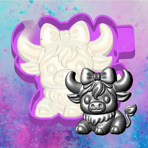 3D cute highland cow with a bow car freshie mold.